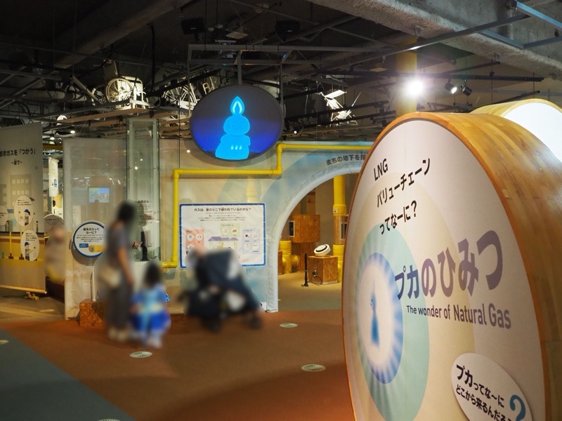 一階はガスや電力に関する展示で、ガスの歴史や、ガスができるまでを教われる展示やガス管の大きさを体感できる遊び場などがあります。