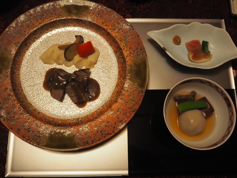 特にこの日びっくりしたのは、焼き物の千葉県産牛サーロイン網焼きと煮物の鮑と里芋饅頭ひしほ餡です。