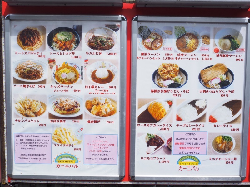 動物園エリアには西園レストラン、遊園地エリアにはG`sレストラン・レストランカーニバル、その中央には中央レストランがあります。