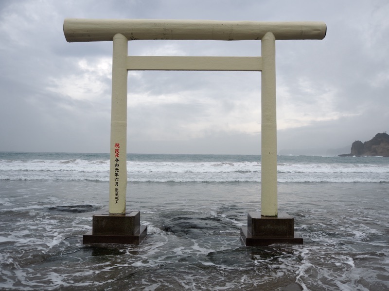 黄昏の丘から鵜原海岸の白い鳥居を見てハイキングコース入り口に戻ると良い感じです。