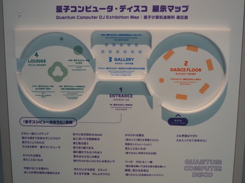 常設展示は入れ替わりがあり、かつて未来逆算思考とインターネット物理演算モデルの展示があったコーナーは、量子コンピュータ・ディスコの展示になっています。