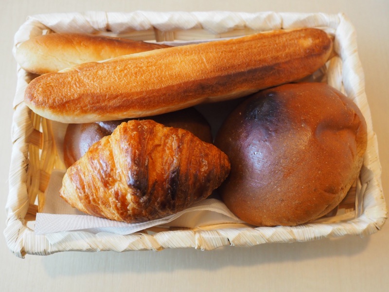 この日のパンはクロワッサンとバターロール、スティックパンの三種類でした。