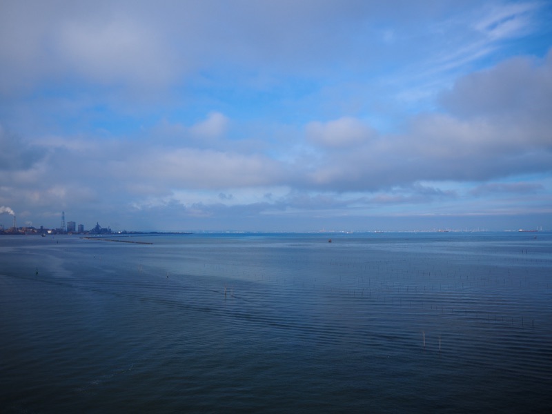 海にかかる巨大な歩道橋中之島大橋からは東京湾を一望できます。