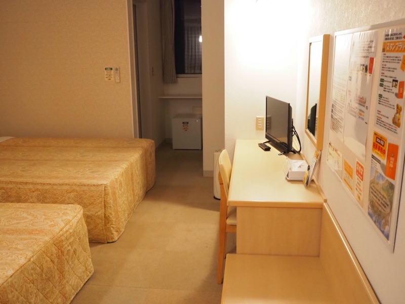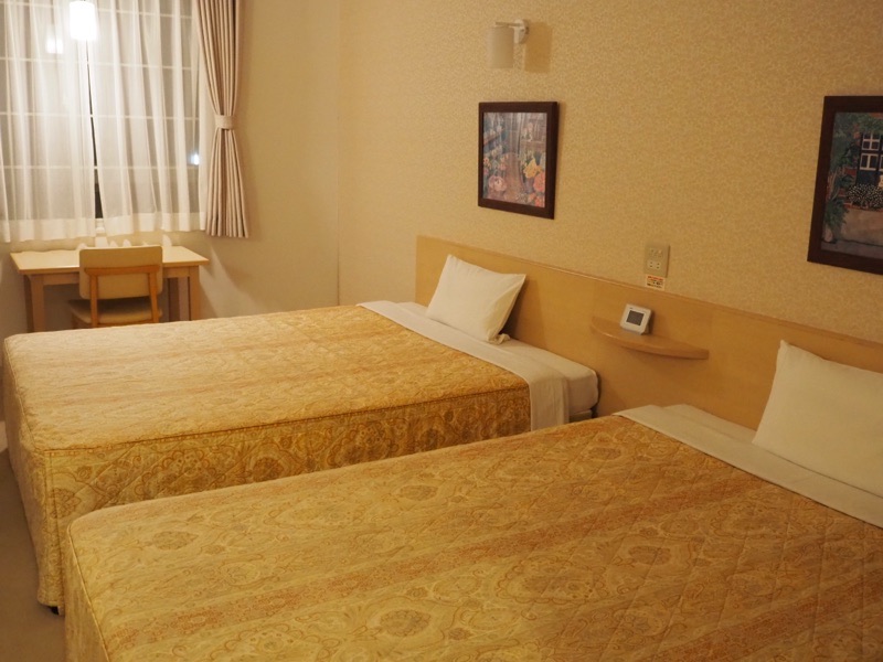 部屋の構成はベッドが2つと机とテーブルにそれぞれ椅子が付いています。