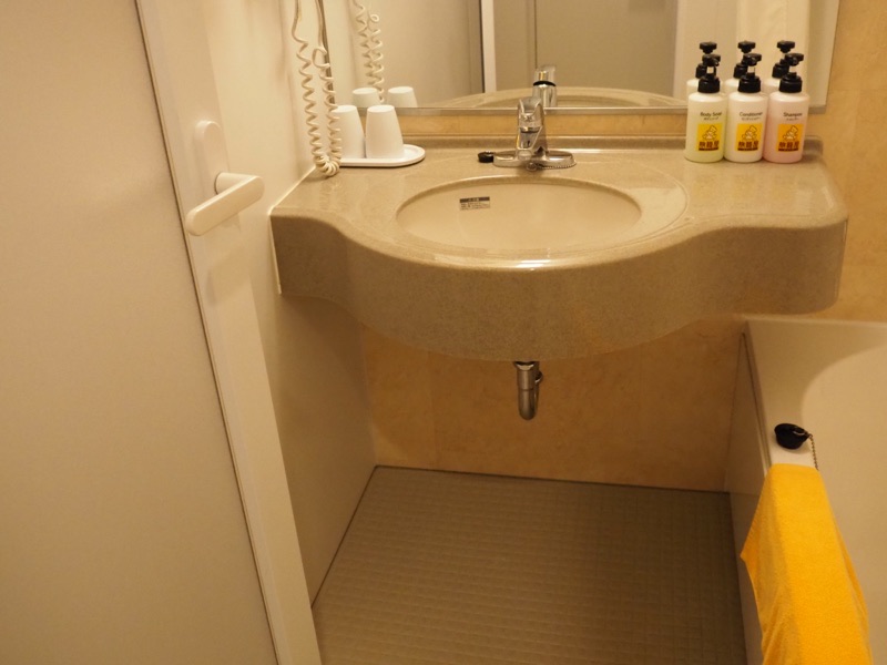 洗面台は大き目で使いやすいですが、アメニティ類はコップとドライヤーしかありません。