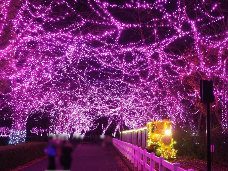 園内を走るミニ鉄道もピカピカにライトアップされているので、園内全体が楽しげな雰囲気に包まれています。