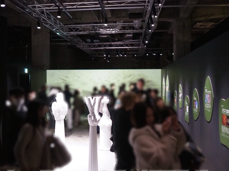 展示の入り口はエレベーターになっているので、人が多いと入り口で行列ができます。